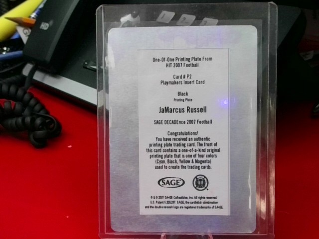 2007 Sage DECADEnce JaMarcus Russell Black Rookie Printing Plate 1/1