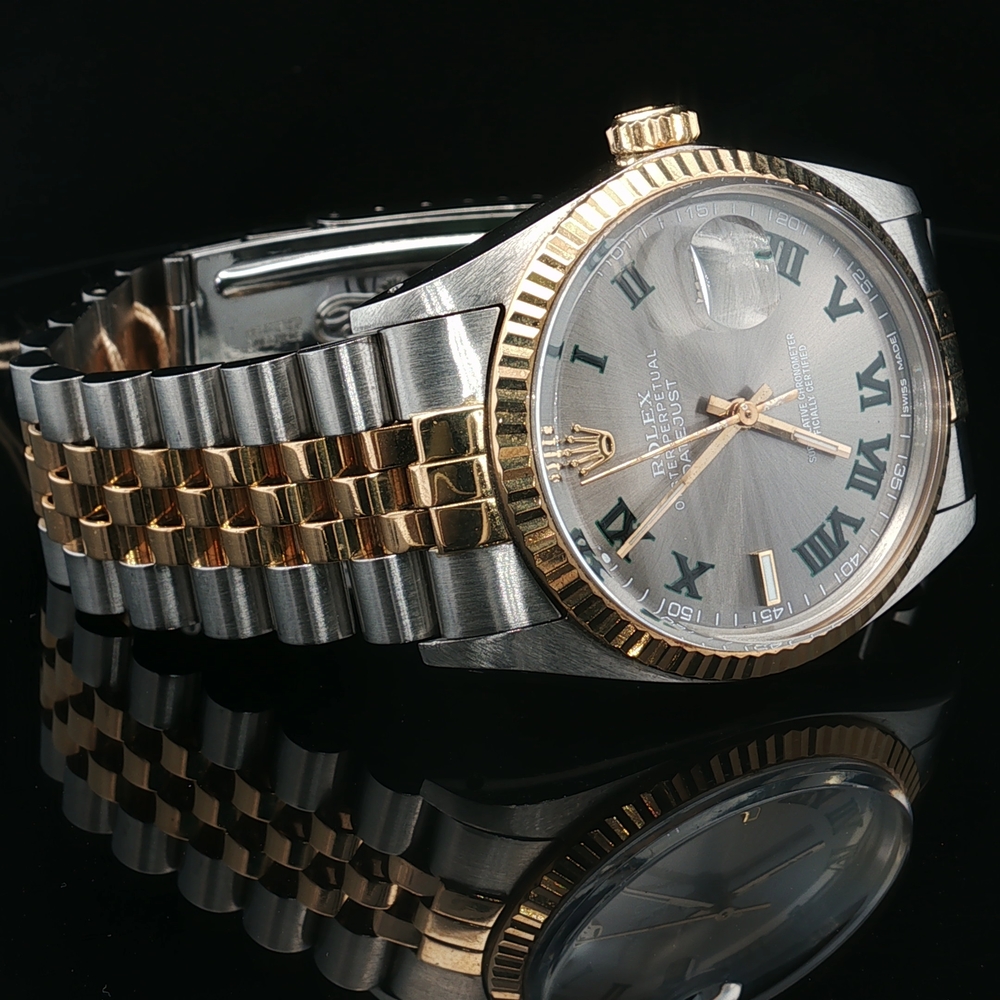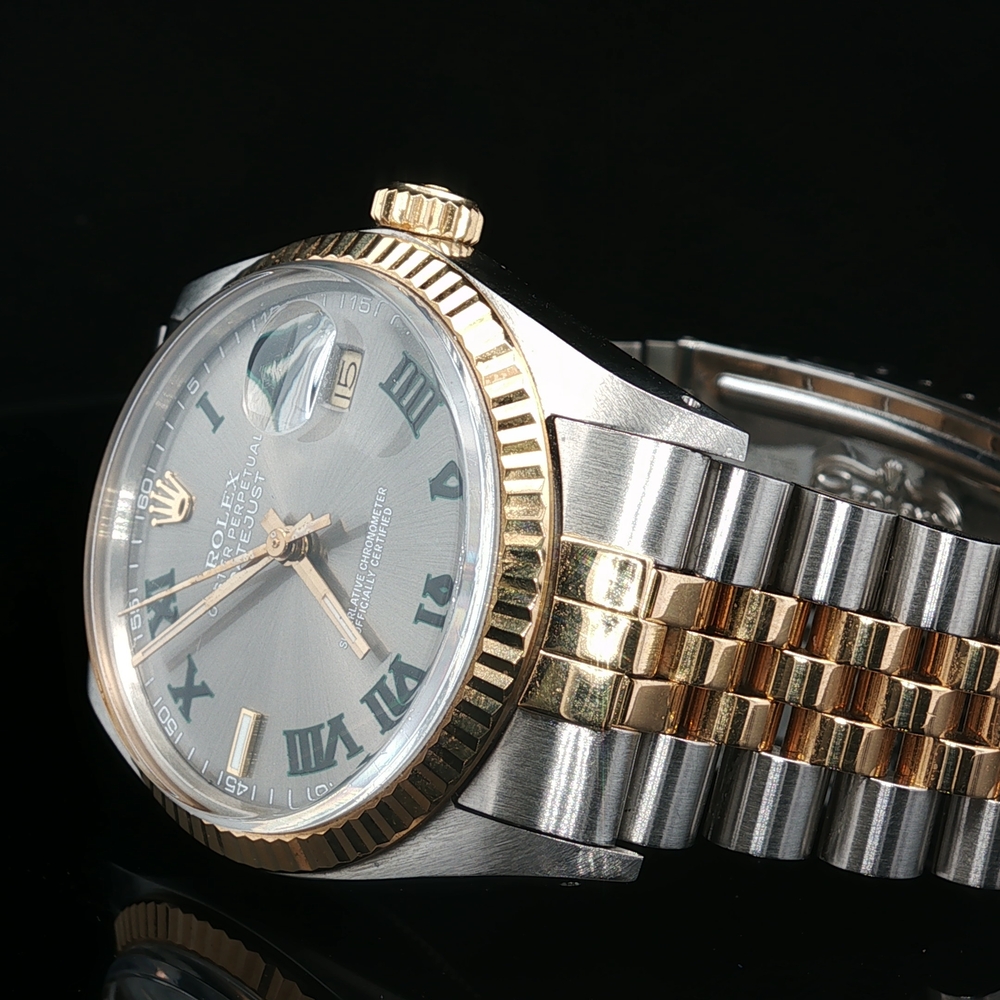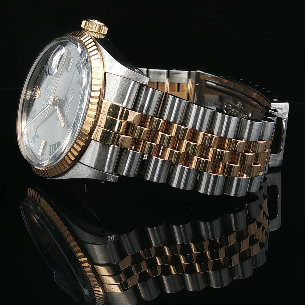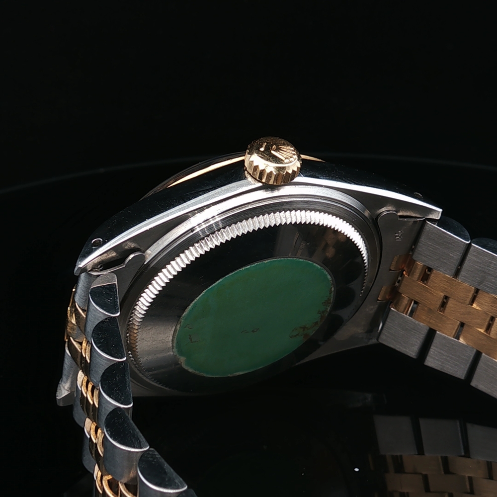 Description: Men's 1985 Rolex Oyster Perpetual Datejust 16013 with 18k yellow gold and stainless steel. This watch does not come with the original box or papers.
